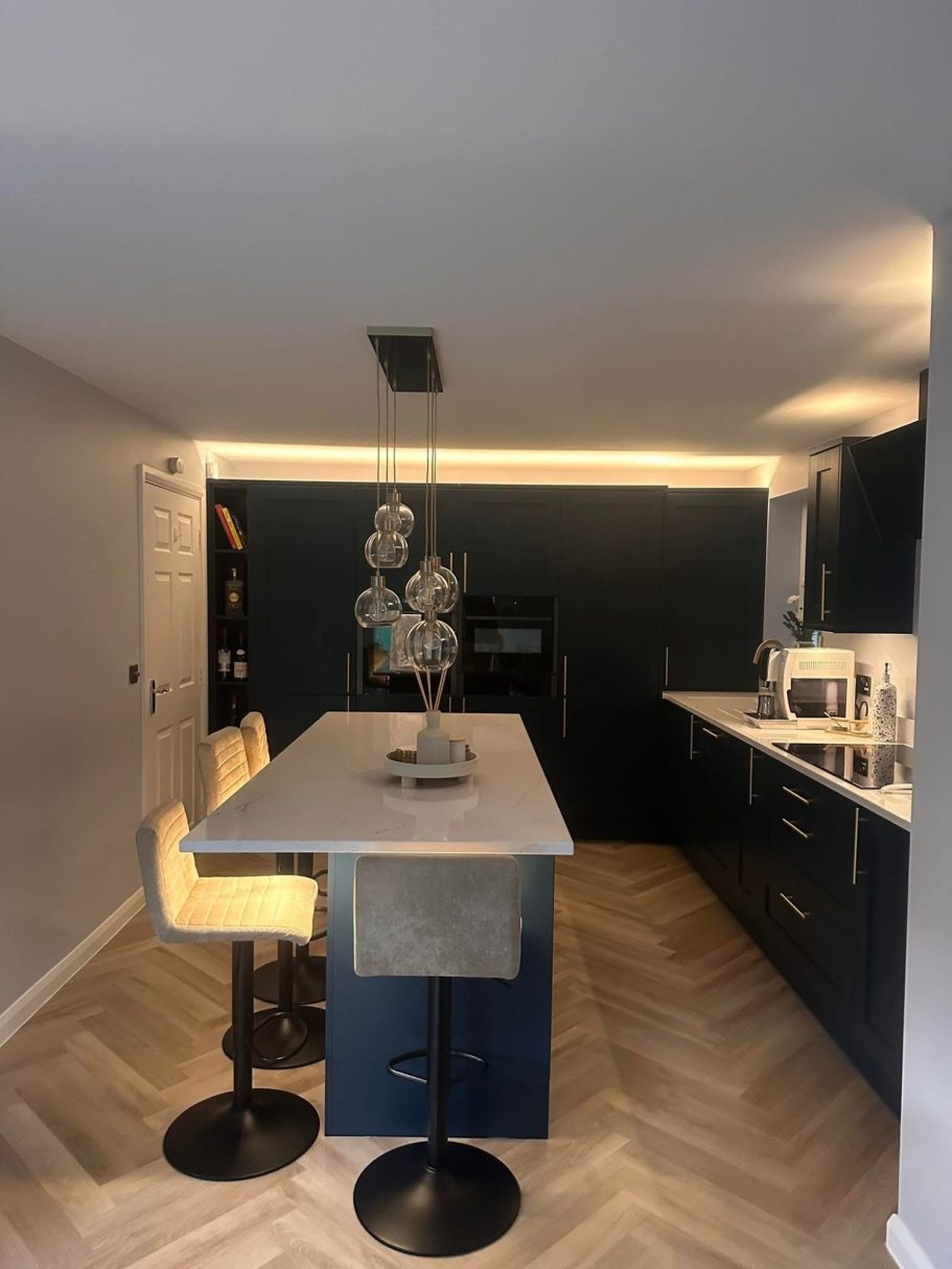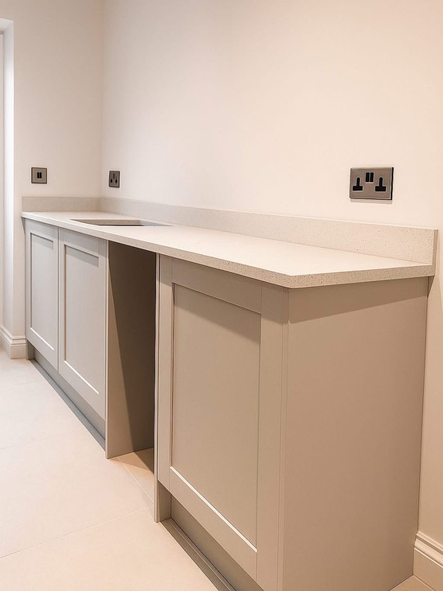 Whether you need a fully fitted laundry area, open pantry shelving, or integrated appliances, we create smart storage that blends practicality with clean, cohesive design. Every detail, from hidden bins and pull-out shelves to worktops and splashbacks, is tailored to your home and how you use it.